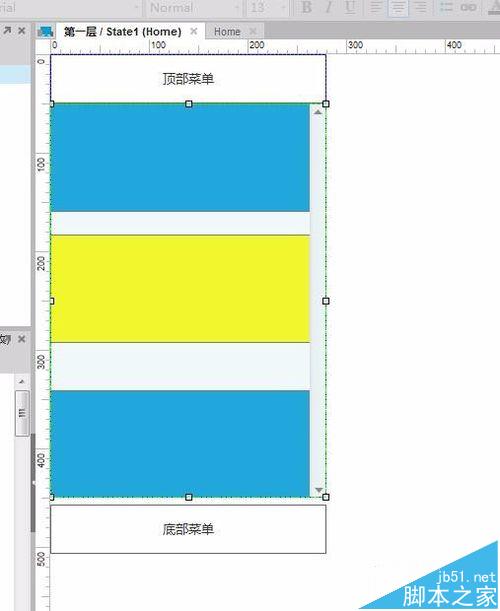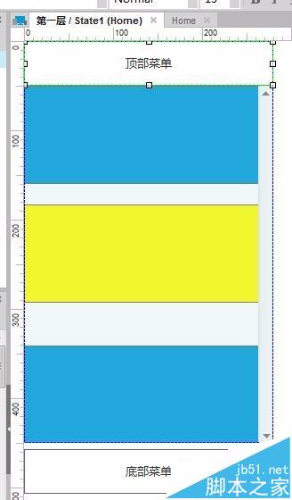 3、在state1中先画一个顶部菜单(参数为0,0,280,50),如果你还想顺便试一下底部菜单的效果也可以,但其实掌握了顶部菜单,底部就很容易了。