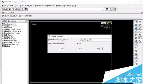 2、定义文件名Utility Menu>File>Change Jobname,弹出对话框后,输入file-1,点击YES,然后点击OK,如下图所示。定义分析标题 Utility Menu>File>Change Title,弹出对话框,我们可以输入example,点击OK即可完成定义分析标题。