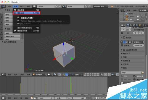 8、完成设置后,我们点击顶部菜单中的“渲染”--“渲染动画”,或者也可以“ctrl+f12”快捷键进行渲染输出。