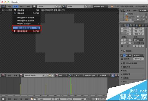 10、切换3d视图与渲染窗口,可以在顶部菜单中“渲染”--“显示/隐藏渲染窗口”,或者“f11”快捷键切换。