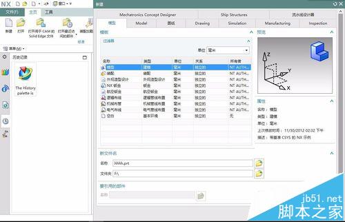 点击新建图标,新建一个模型文件,命名为hhhh.prt,英文名即可。然后点击确定