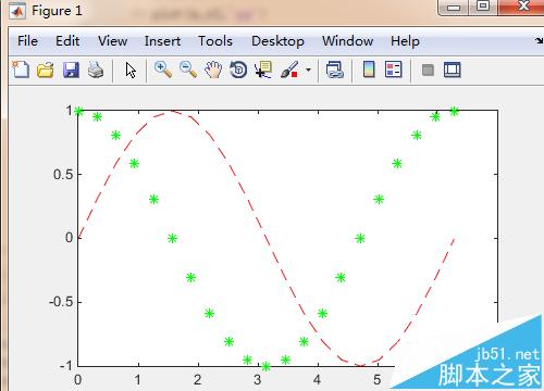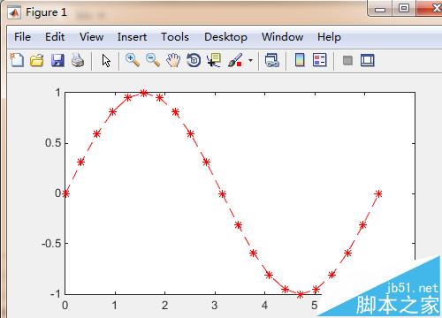 5、另外,我们可以在一条命令中同时设置线型和颜色。plot(x,y1,'--*r')。