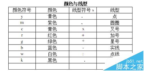 4、设置线条颜色: plot(x,y1,'r'),类似地,在第二张图中给出各种颜色和线型的符号。