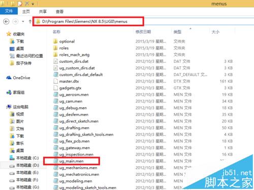 1、找到 menus 文件夹下的 ug_main.men 文件。