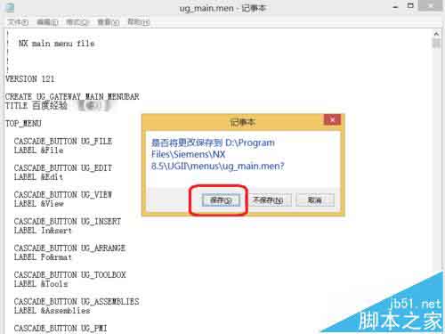 5、保存ug_main.men文件。