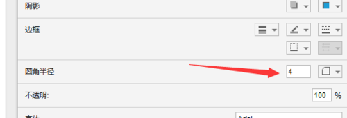3、将该矩形的圆角半径调整为4;矩形边框颜色调整为999999;