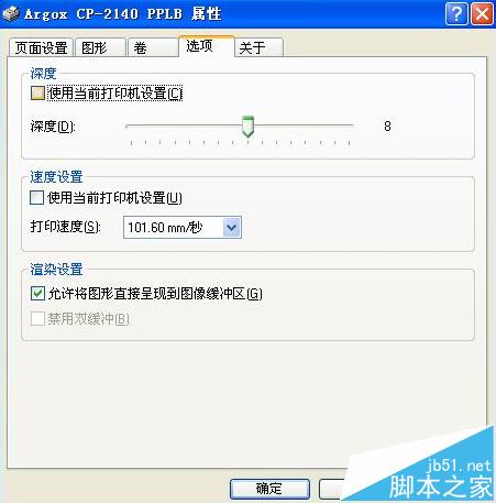2、单击所选打印机后的属性按钮,在打开的对话框中切换至“选项”显像卡。将深度设置或者温度前面的勾去掉就可以调节了,一般调中等偏上就可以。可以根据需求再提高温度或者降低打印速度。