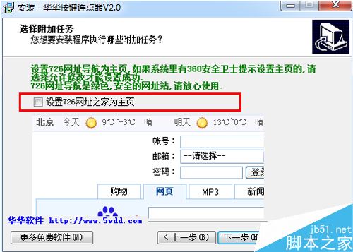 安装华华按键连点器时,安装程序会附加其他安装程序和修改IE主页,请仔细安装