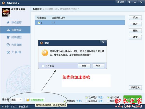 dnf盒子还有一个免费游戏加速功能哦,就在盒子的左下方,直接就能点击使用