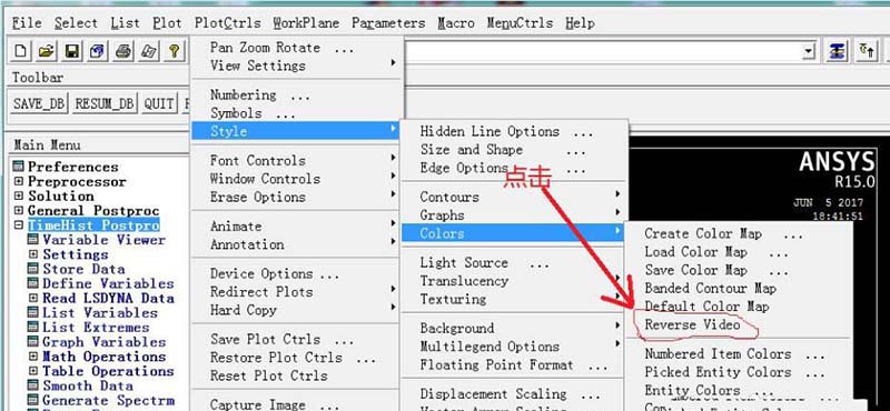 2、依次将鼠标移动到PlotCtrs-Style-Colors-Reverse Video,然后点击Reverse Video,可以看到窗口背景已经由原来的黑色变为白色背景颜色了,如下图