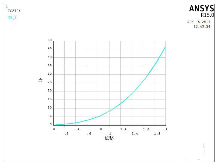 3、接下来在后处理中绘制该结构的力-变形曲线,Ansys默认的坐标标签名称为,X-TIME,Y-VALUE,如图所示