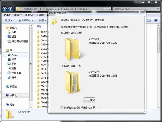 11、最后打开“\_SolidSQUAD_\NX 11.0”,将其中的全部文件复制到NX 11安装目录下覆盖源文件即可完成破解,这里的默认路径为C:\Program Files\Siemens\NX 11.0