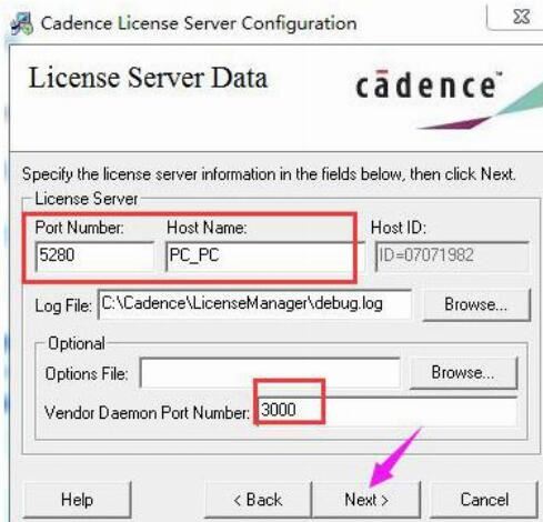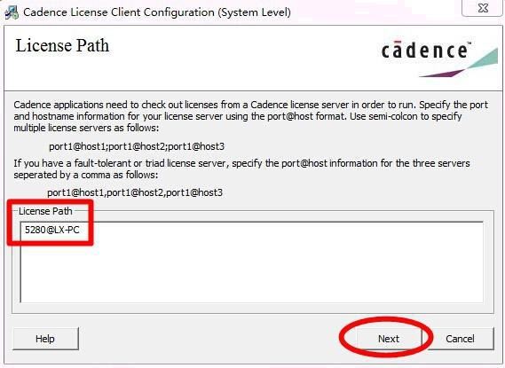 在上述框内填上 5280@自己的计算机名称(Cadence 16.6 和 17.2 版本一般不需要去填写)。继续下一步操作 Next