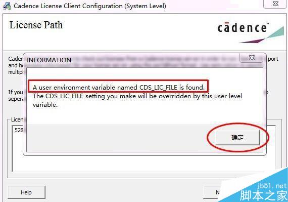 9、在 X:\Cadence\License Manager 下以管理员身份运行 LicenseClientConfiguration.exe,(图 22 中的 2),在弹出的界面点击确定(图 30),然后在 图 31 中,这一步不用填什么内容直接点 next,最后点 finish 。