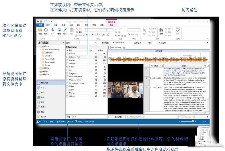 NVivo 工作区的设计采用 Microsoft 用户界面指导方针,因此界面熟悉、简单易用。