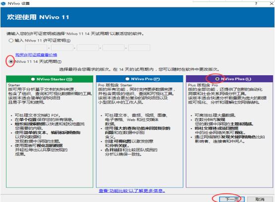 2、启动NVivo11软件:运行桌面NVivo11快捷方式,选NVivo 11 14天试用期的 NVivo plus