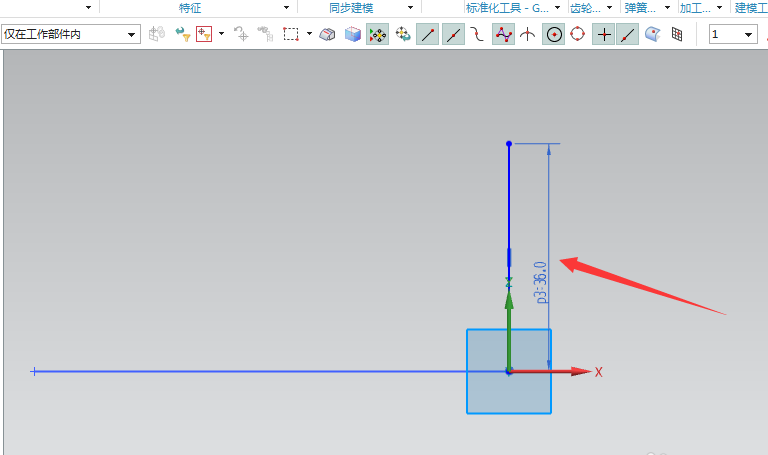 2、以线的端点为基点,创建一个CSYS坐标,等下要根据这个坐标来绘制图形;