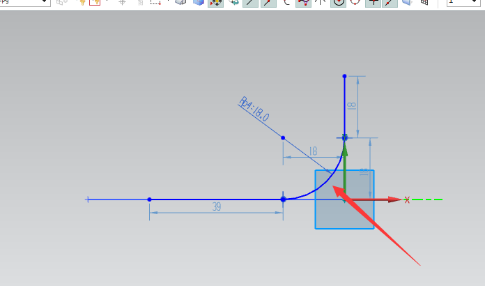 4、绘制如下图的R角线,其半径为18mm,(此线处需要运用制作拐角,以防止其会断开)