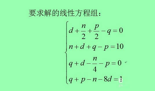 1、需要求解的方程组,既然是求符号解,所以我们提供的方程组里面就有未知参数,而求出的结果也应该就有参数。下面使我们要求的线性方程组。
