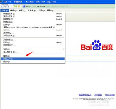 点击打开浏览器中的文件选项后,从它选项下“脱机工作”选项,并查看这个选项的前面是否打√,如果点击取消。