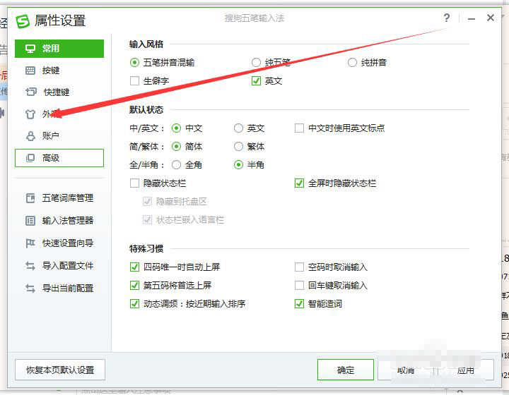 5、属性设置设置【纯五笔】就可以只是五笔输入了。