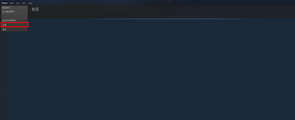 2、点击上方的steam,会弹出一个下拉菜单,然后点击“设置”进入“设置”界面。
