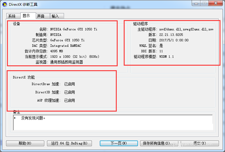 2、我们排除问题后,我们可以打开dxdiag诊断工具,来查看当前显卡是否正常运行,是否可以正常加载游戏,主要体现在下图的3D加速一栏,如果不确定DX11驱动正常运行,那么我们可以下载修复工具进行修复;详情参考下图