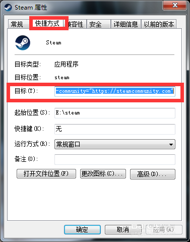 我们找到hosts文件,然后以记事本格式打开,然后输入以下内容:23.52.74.146 steamcommunity.com,然后找到steam图标右击“属性”选择“快捷方式”在“目标”加入以下内容: -community="https://steamcommunity.com" 例如:E:\steam\Steam.exe -community="https://steamcommunity.com"