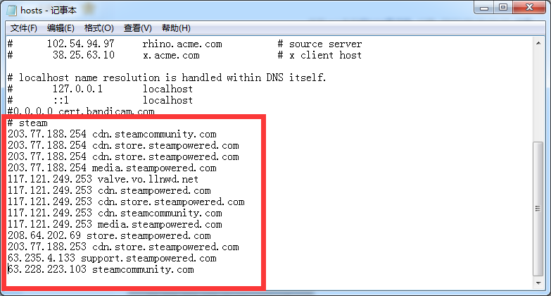 修改后出现异常,我们把hosts文件修改内容和目标修改内容给删掉就可以了(近期steam污染只需要看第一步即可)