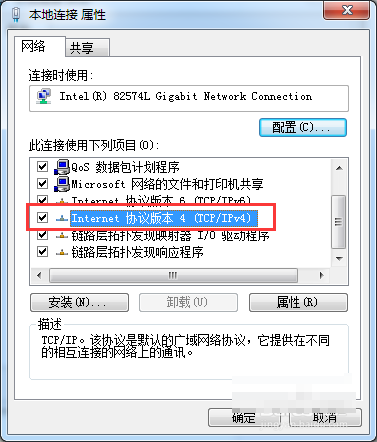 6、最后打开本地协议,选择IPV4协议版本,进入属性然后选择“使用下面的DNS服务器地址”修改为:主要DNS修改为8.8.8.8,备用DNS修改为114.114.114.114。
