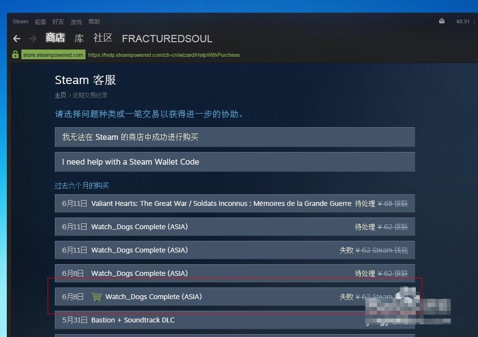 文章结束,以上就是关于STEAM付款时不小心把付款页面关了怎么重新付款?的解决方法,如果你也遇到了类似的问题,那就按照以上方法试试吧!