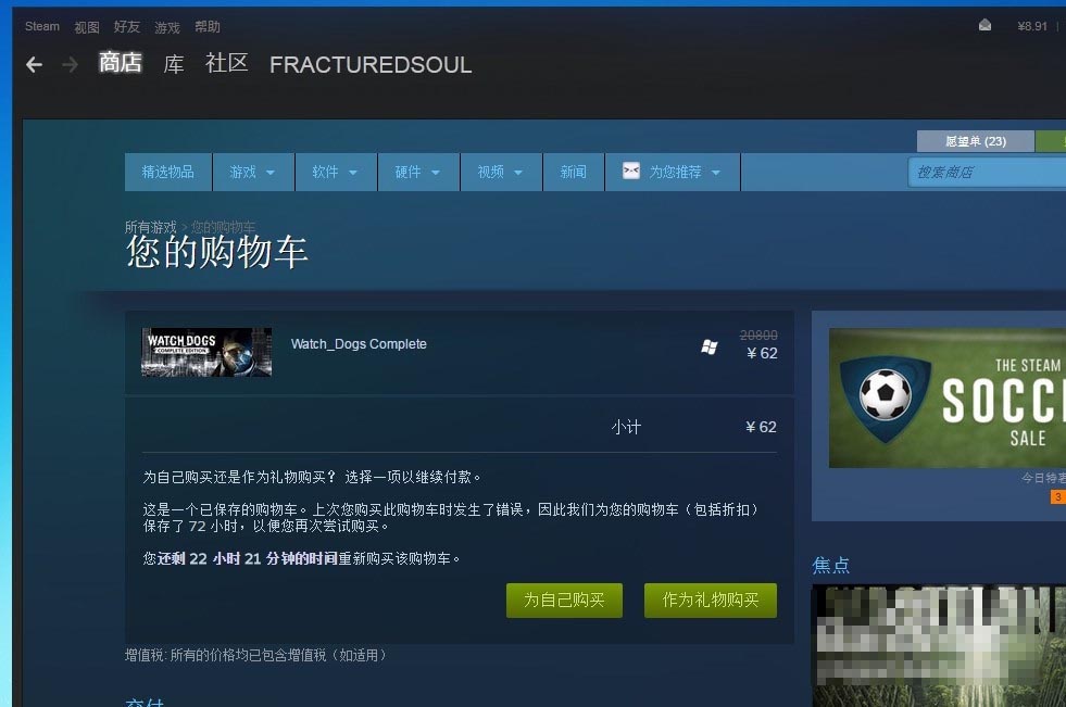 STEAM认定付款失败后,订单保留72小时(包括优惠)