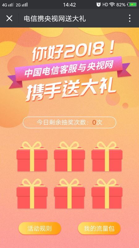2、奖品电信流量包以300M为单位,获得900M电信流量包的用户,将收到3个300M电信流量包;获得600M电信流量包的用户,将收到2个300M电信流量包。