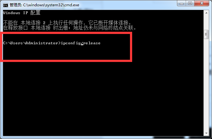 2、当你重置DNS缓存后,我们应该继续释放IP缓存依旧打开CMD命令符,然后输入“ipconfig/release”进行IP释放。