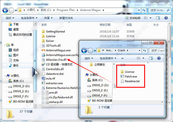 2.这时我们再回到刚才下载的数据包中,将“Crack”文件夹中的破解文件一起复制到软件的安装目录中“C:\Program Files\Antenna Magus”