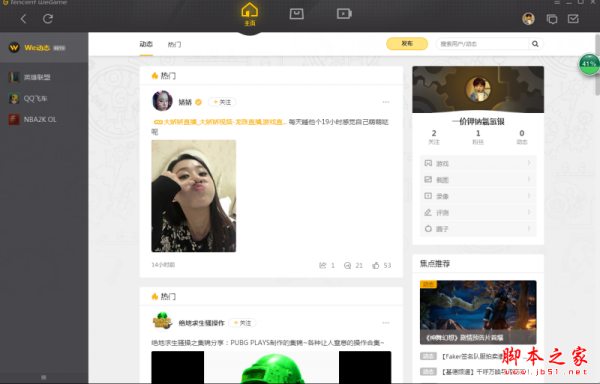 2、接着,我们在wegame中主页的右侧可以看到我们登录wegame的账号小头像,然后我们直接点击该小头像可以进入游戏资料界面。