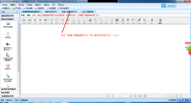 6.接下来就可以到我们的计价软件中去编辑了,最终生成投标文件,生成的投标文件的格式(.13jt)