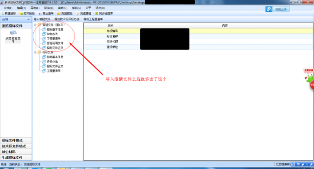 3.之后就来到了这里的界面(出现这个界面说明导入招标文件已经成功了),如下