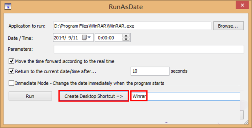 如果希望以后继续使用此时间运行此程序,在最下方的文本框输入程序名,然后点击 Create Desktop Shortcut ,即可在桌面上创建此程序的快捷方式: