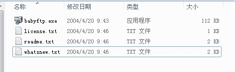 真正起作用的只有babyftp.exe一个文件。解压后的大小是112kb。