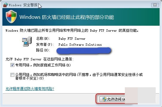 双击babyftp.exe,运行。解除防火墙的阻止。