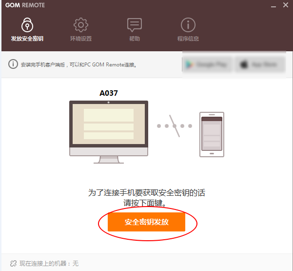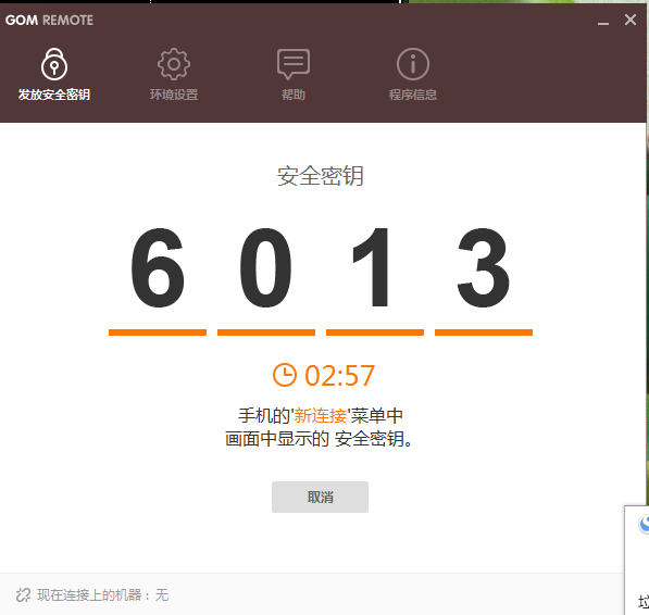 启动PC端remote点击生成安全秘钥发送选项,接着会生成一个安装密码。