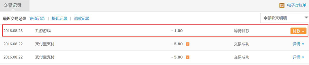 如果遇到无法通过手机完成支付的用户,也可以通过网页端打开并登陆支付宝,在交易记录内可以看到游戏支付的信息,根据支付流程完成支付即可。