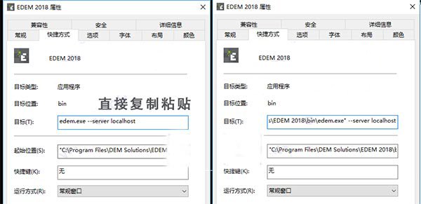 复制“edem.exe –server localhost”粘贴到快捷方式里的目标,保存即可。