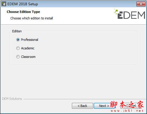 2、双击文件“EDEM2018.exe”,选择Professional版本安装;