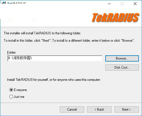 4、选择软件的安装位置,默认位置“C:\Program Files (x86)\TekRADIUS\”,建议安装在D盘,点击Next;