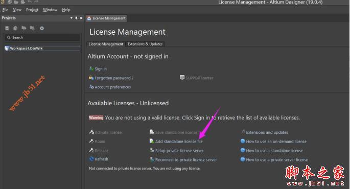 4、找到Add standalone license file,弹出加载license文件对话框,加载本文提供的和谐 Licenses 文件(后缀.alf)