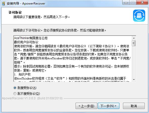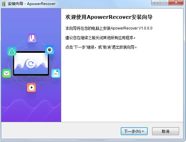 2、双击apowerrecover-1.0.5.exe运行,语言选择简体中文,点击确定
