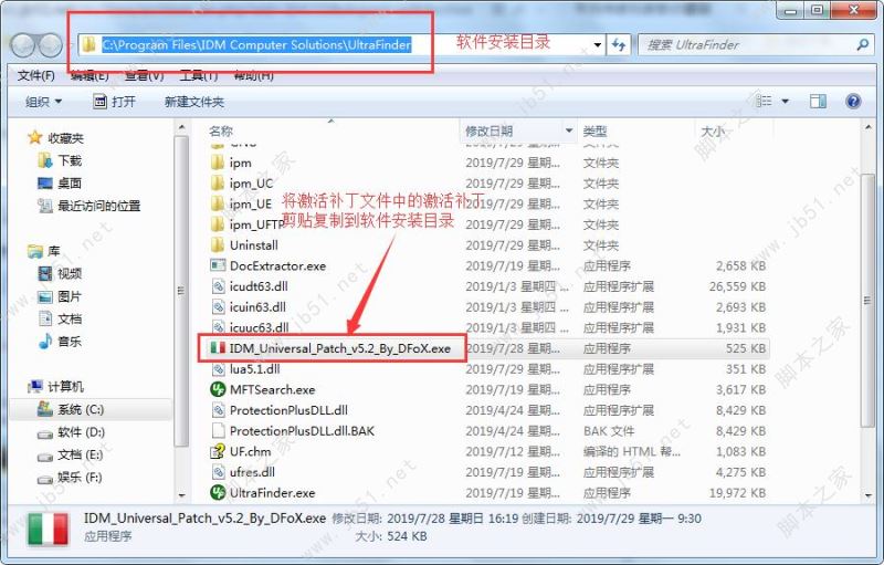 7.然后打开激活补丁,将“IDM_Universal_Patch_v5.2_By_DFoX.exe”复制到软件安装目录并打开,如图