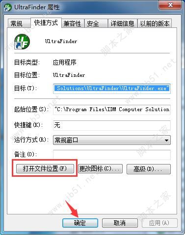 6.首先找到软件安装目录,如果忘记也不要害怕,在桌面上找到软件快捷方式并右键点击,选择属性,点击打开文件安装位置即可。软件默认安装目录:C:\Program Files\IDM Computer Solutions\UltraFinder\